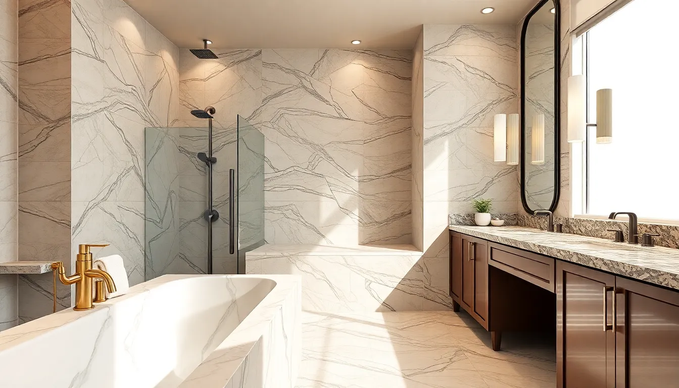 Natural stone, ceramic tiles, and premium fixtures characterize luxury baths. Marble countertops and granite vanities offer timeless beauty and resilience. Well-chosen materials maintain their appeal over time, resisting wear while providing an air of sophistication. High-end brands like Kohler and Toto supply fixtures known for quality and style. Composite materials often blend functionality with elegant designs, adding a modern touch to classic elements. Each selection contributes to an overall luxurious atmosphere that enhances the bathing experience.